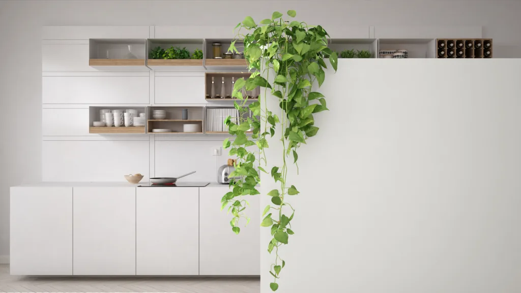Hvite fronter reflekterer lys og skaper romfølelse. Det er ikke kjedelig — det er tidløst. Hvitt gir deg frihet til å eksperimentere med detaljer som tekstiler, planter og oppbevaring.